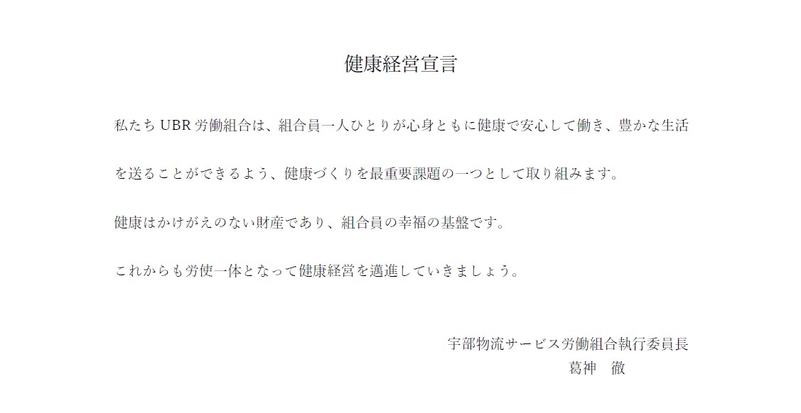 この宣言のもと、UBRは健康風土の醸成を図っていきます。